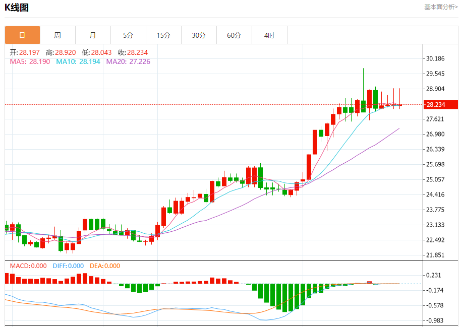 周五盘中,现货白银报28.238,涨幅0.09%。 今日分析:在28.60之下,看跌,目标价位为27.95,然后为27.70。 技术点评:只要依旧存在28.60阻力位,价格波动存在看跌的趋势。 支撑位:27.9527.7027.56 阻力位:29.2028.9528.60 (亚汇网编辑:冰凡)