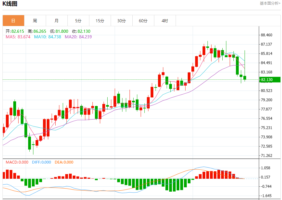 周五盘中,WTI原油报82.159,跌幅0.42%。 今日分析:在82.70之下,看跌,目标价位为81.05,然后为80.45。 技术点评:只要82.70阻力位不被突破,向下跌破81.05位置的风险很高。 支撑位:81.0580.4580.00 阻力位:85.1583.7082.70 (亚汇网编辑:冰