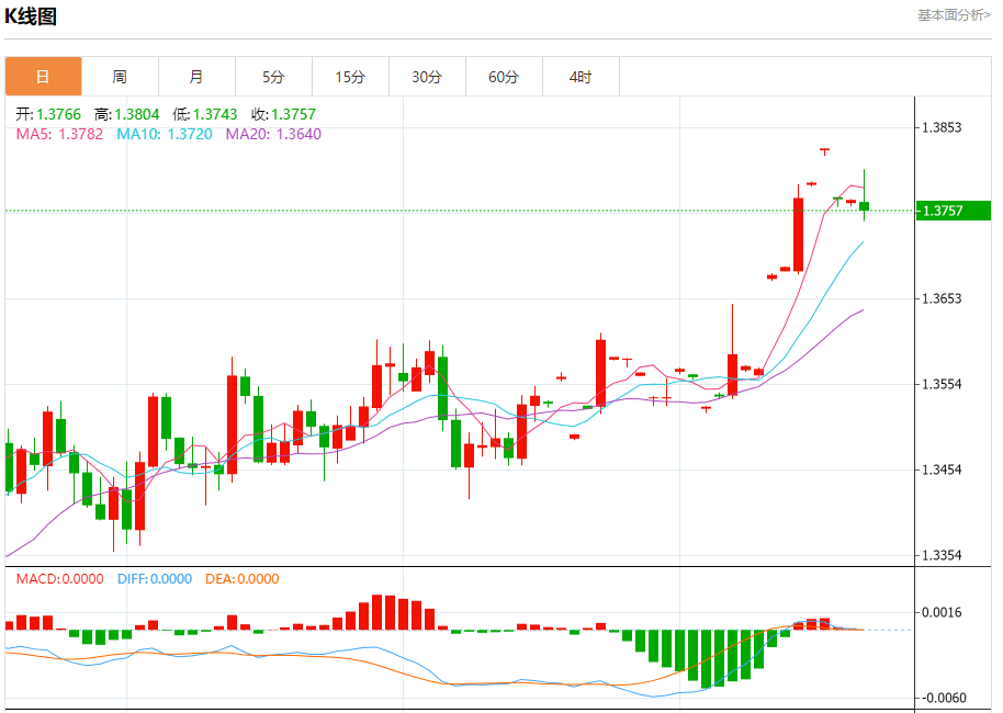 今日周五,澳元兑美元报0.6425,涨幅0.06%;美元兑加元报1.3750,跌幅0.13%;美元兑瑞郎报0.9077,跌幅0.53%。 澳元兑美元汇率分析 技术点评:RI技术指标运行趋势复杂,倾向于上涨。 阻力位:0.64550.64400.6425 支撑位:0.63850.63600.6345 美元