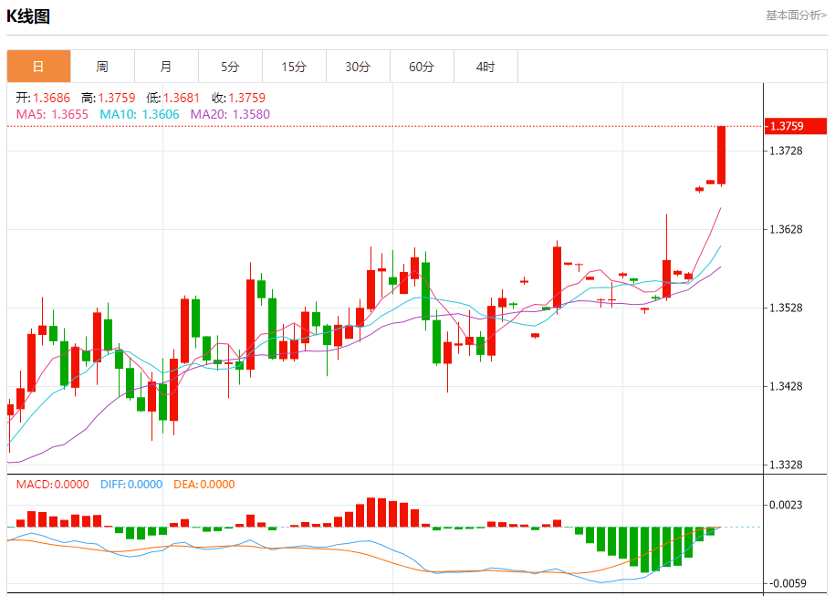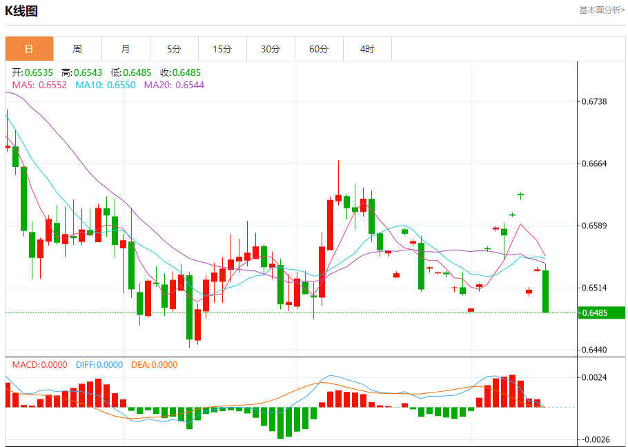 今日周五,澳元兑美元报0.6486,跌幅0.79%;美元兑加元报1.3760,涨幅0.51%;美元兑瑞郎报0.9116,涨幅0.16%。 澳元兑美元汇率分析 技术点评:RI技术指标向下运行。 阻力位:0.65800.65550.6530 支撑位:0.64800.64600.6445 美元兑加元汇率分析