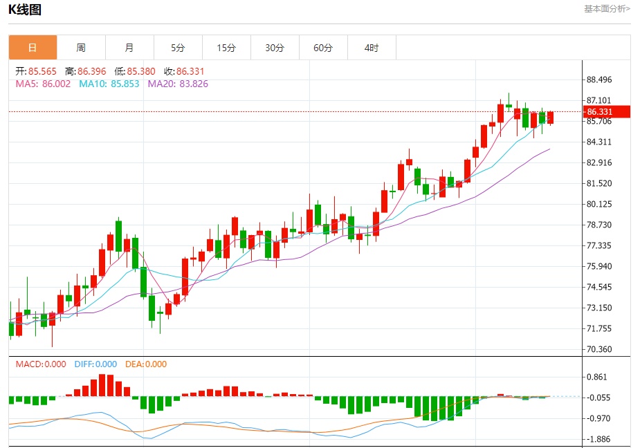 周五盘中,WTI原油报86.426,涨幅0.99%。 今日分析:在85.40之上,看涨,目标价位为86.60,然后为87.10。 技术点评:RI技术指标向上运行。 支撑位:85.4084.9584.55 阻力位:87.6087.1086.60 (亚汇网编辑:冰凡)