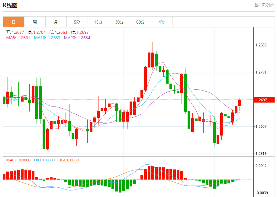 周三盘中,英镑/美元报1.2700,涨幅0.17%。 今日分析:在1.2660之上,看涨,目标价位为1.2710,然后为1.2730。 技术点评:RI技术指标向上运行。 支撑位:1.26601.26451.2630 阻力位:1.27451.27301.2710 (亚汇网编辑:冰凡)