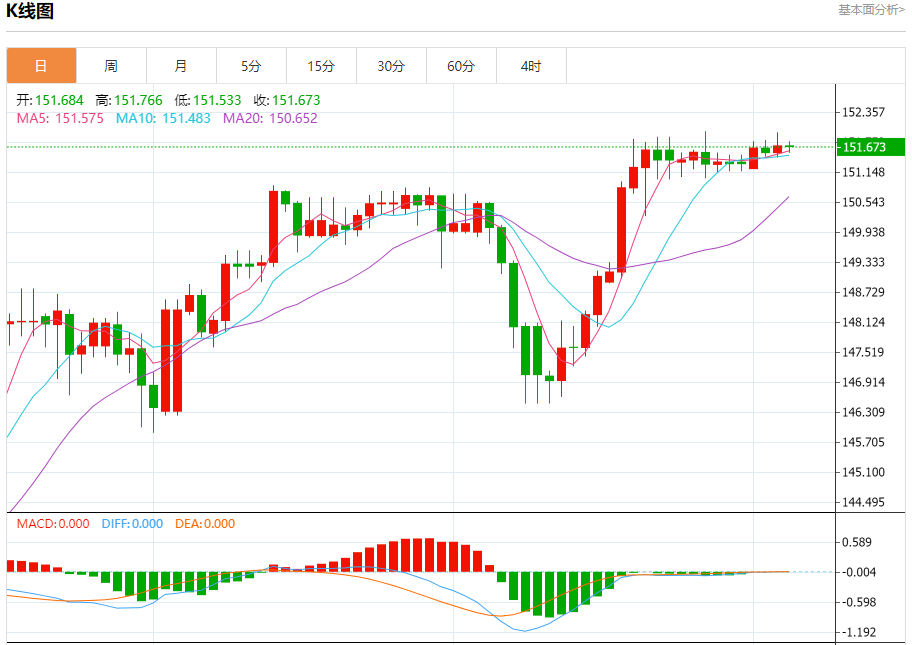 周四盘中,美元/日元报151.684,跌幅0.01%。 今日分析:在151.80之下,看跌,目标价位为151.45,然后为151.30。 技术点评:上升的空间可能被151.80阻力位所限制。 支撑位:151.45151.30151.15 阻力位:152.10151.95151.80 (亚汇网编辑:冰凡)