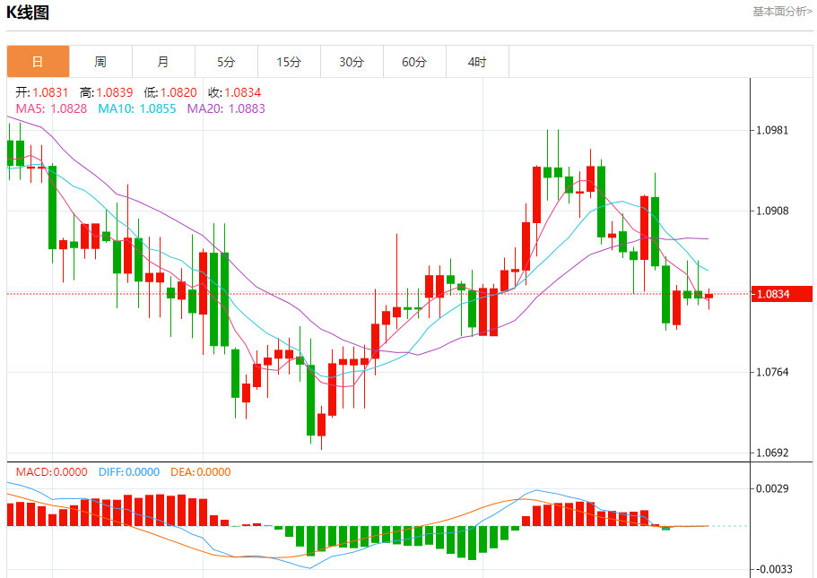周三晚间,美元指数现报104.341,涨幅0.04%,现对美元兑欧元、英镑、日元主要货币对分析表述如下: 欧元/美元 汇价高见1.0839,低见1.0820。上一交易日,汇价收于1.0831。 基本面:德意志银行经济学家在一份报告中指出,欧洲央行将在6月份降息,但接下来会发生什么将引发激烈