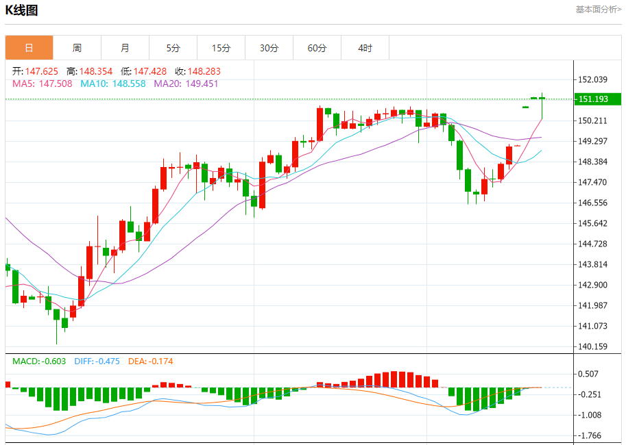 周四盘中,美元/日元报151.207,跌幅0.04%。 今日分析:在150.25之上,看涨,目标价位为151.85,然后为152.20。 技术点评:RI技术指标向上运行。 支撑位:150.25149.80149.40 阻力位:152.60152.20151.85 (亚汇网编辑:冰凡)