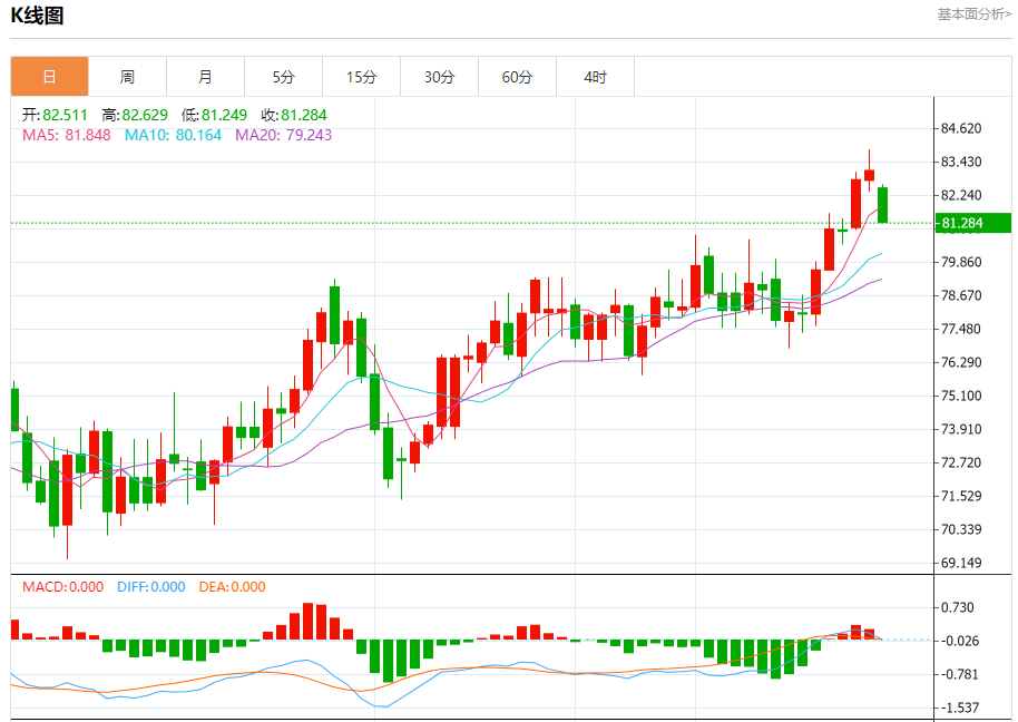 周三盘中,WTI原油报81.335,跌幅2.16%。 今日分析:在82.25之下,看跌,目标价位为81.50,然后为80.80。 技术点评:RI技术指标看跌,有进一步向下趋势。 支撑位:81.5080.8080.00 阻力位:83.0082.6082.25 (亚汇网编辑:冰凡)