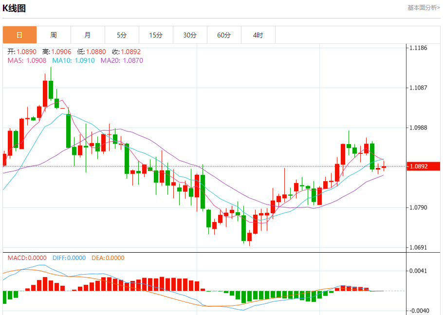 周一盘中,欧元/美元报1.0893,涨幅0.04%。 今日分析:在1.0880之上,看涨,目标价位为1.0915,然后为1.0930。 技术点评:RI技术指标向上运行。 支撑位:1.08801.08701.0855 阻力位:1.09451.09301.0915 (亚汇网编辑:冰凡)