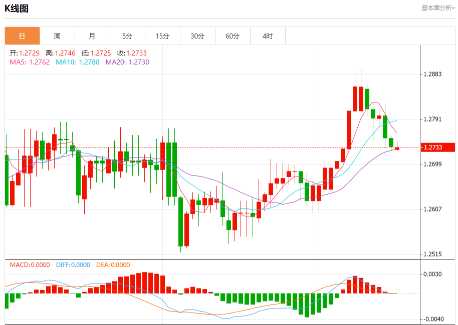 周一盘中,英镑/美元报1.2733,跌幅0.02%。 今日分析:在1.2760之下,看跌,目标价位为1.2720,然后为1.2710。 技术点评:RI技术指标缺乏上升动能 支撑位:1.27201.27101.2690 阻力位:1.28001.27801.2760 (亚汇网编辑:冰凡)
