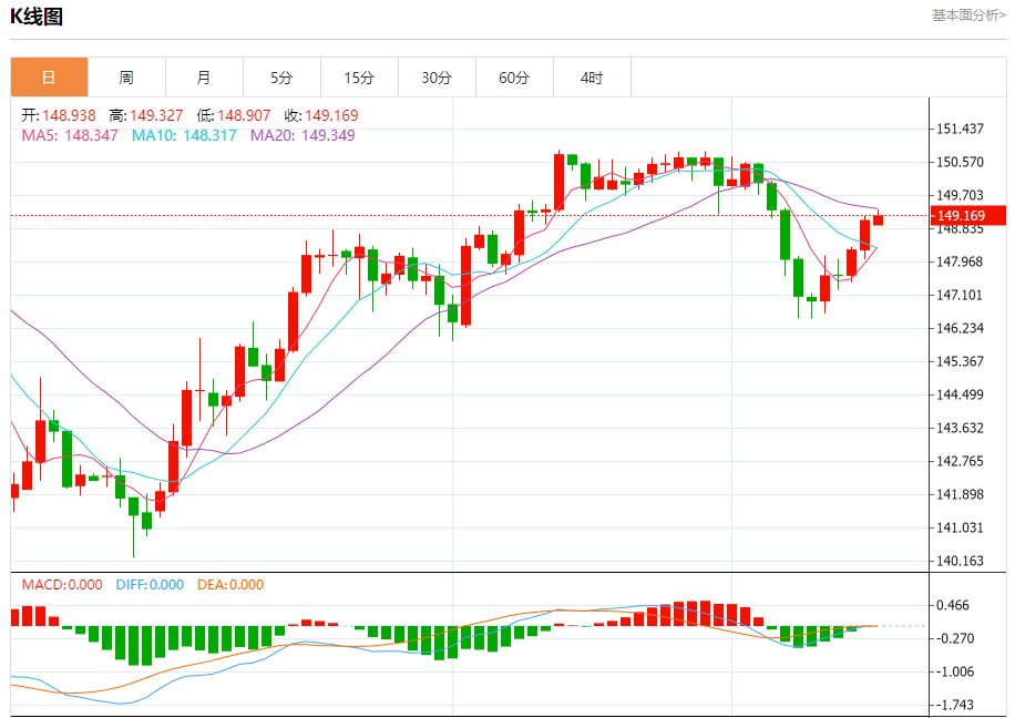 周一盘中,美元/日元报149.183,涨幅0.08%。 今日分析:在148.75之上,看涨,目标价位为149.35,然后为149.60。 技术点评:RI技术指标缺乏下降动能 支撑位:148.75148.35148.00 阻力位:150.00149.60149.35 (亚汇网编辑:冰凡)