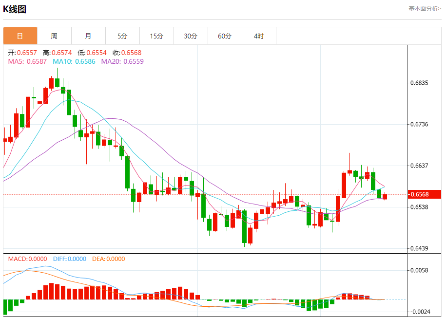 今日周一,澳元兑美元报0.6570,涨幅0.13%;美元兑加元报1.3537,跌幅0.02%;美元兑瑞郎报0.8842,涨幅0.06%。 澳元兑美元汇率分析 技术点评:上升的空间可能被0.6575阻力位所限制。 阻力位:0.66100.65900.6575 支撑位:0.65500.65300.6510 美元
