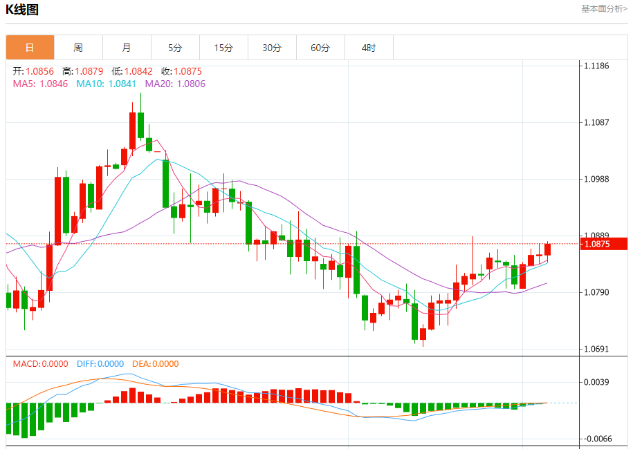 周三晚间,美元指数现报103.616,跌幅0.16%,现对美元兑欧元、英镑、日元主要货币对分析表述如下: 欧元/美元 汇价高见1.0879,低见1.0842。上一交易日,汇价收于1.0856。 基本面:欧洲股市涨势暂停,投资者在评估好坏参半的美国经济数据的同时,也在寻找利率走