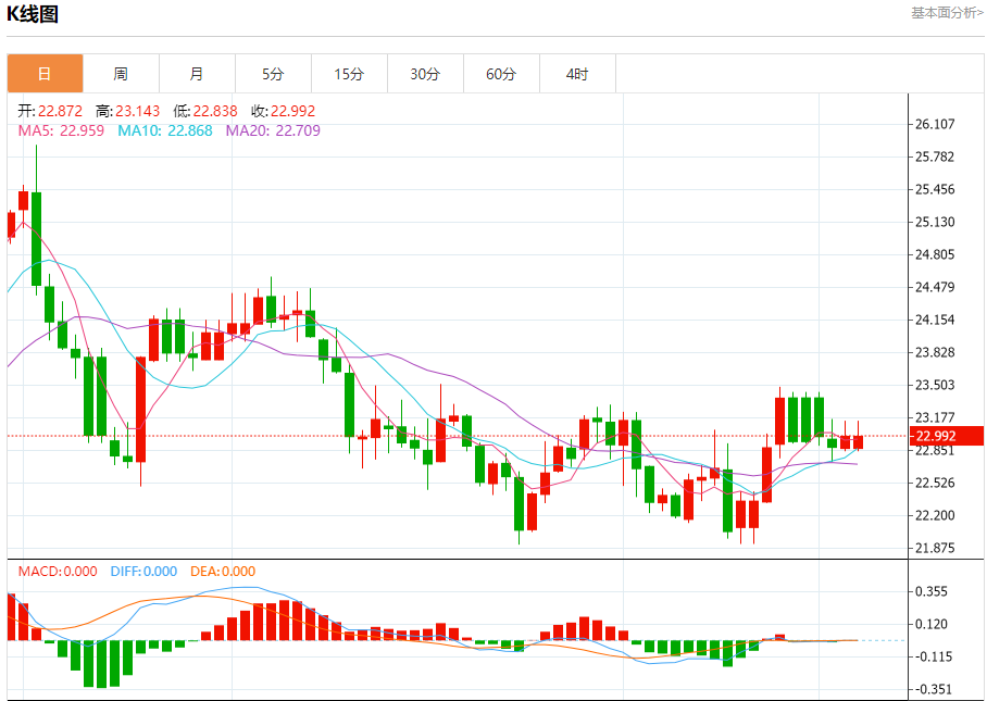 周四盘中,现货白银报22.993,涨幅0.57%。 今日分析:在22.84之上,看涨,目标价位为23.18,然后为23.35。 技术点评:RI技术指标看涨,有进一步上升空间。 支撑位:22.8422.7422.64 阻力位:23.5023.3523.18 (亚汇网编辑:冰凡)