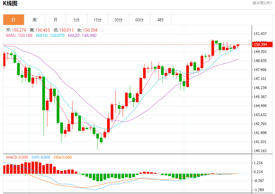 周四盘中,美元/日元报150.391,涨幅0.07%。 今日分析:在150.45之下,看跌,目标价位为149.95,然后为149.80。 技术点评:RI技术指标缺乏上升动能 支撑位:149.95149.80149.65 阻力位:150.75150.60150.45 (亚汇网编辑:冰凡)