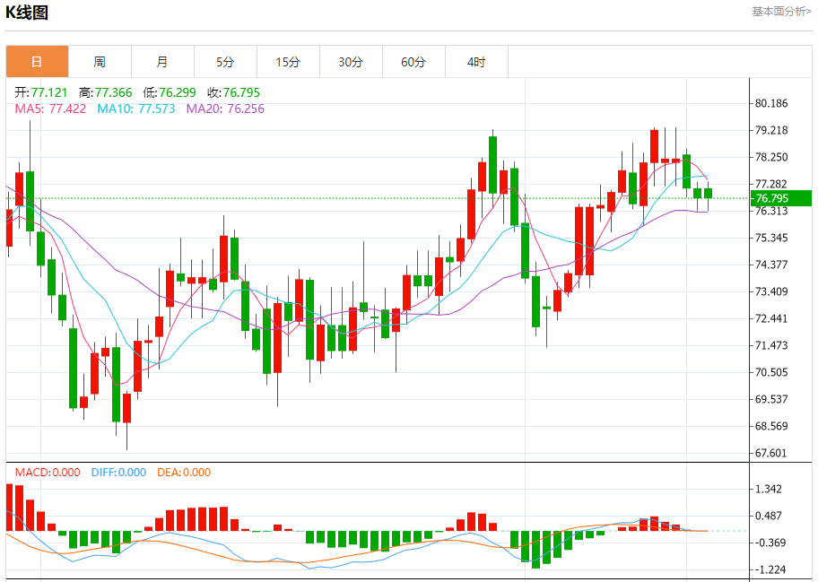 周三盘中,WTI原油报76.795,跌幅0.53%。 今日分析:在77.10之下,看跌,目标价位为76.30,然后为75.80。 技术点评:跌破77.10,为空头信号,向下的目标将会是76.30。 支撑位:76.3075.8075.50 阻力位:77.6077.3577.10 (亚汇网编辑:冰凡)