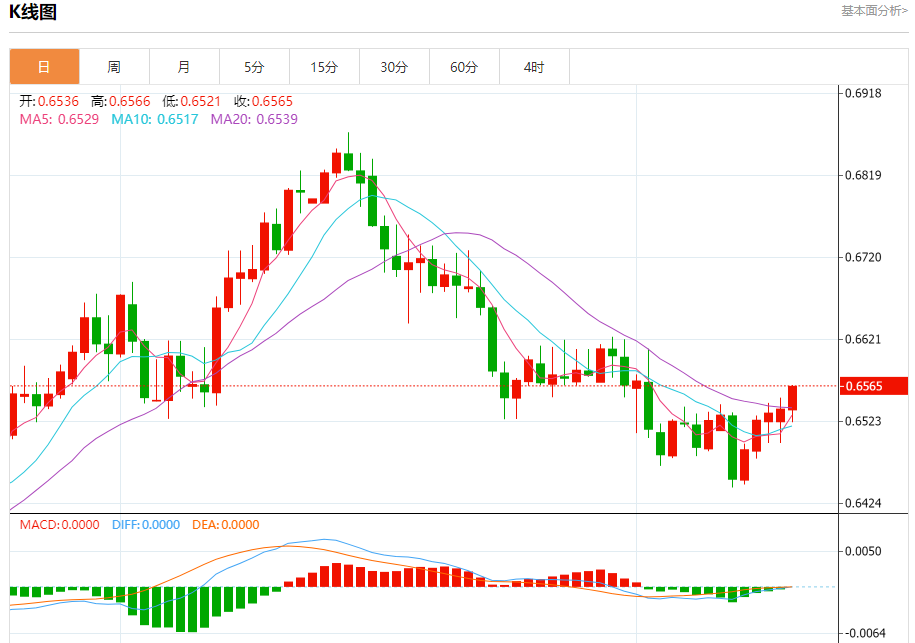 今日周二,澳元兑美元报0.6566,涨幅0.43%;美元兑加元报1.3475,跌幅0.10%;美元兑瑞郎报0.8820,跌幅0.03%。 澳元兑美元汇率分析 技术点评:RI技术指标向上运行。 阻力位:0.66100.65900.6575 支撑位:0.65300.65200.6500 美元兑加元汇率分析
