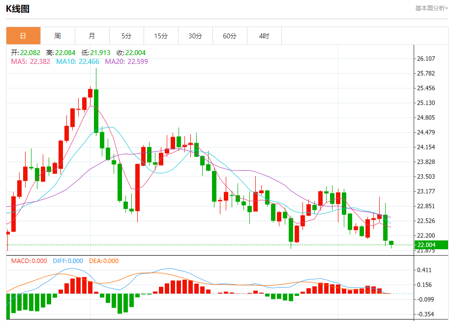 周三盘中,现货白银报22.003,跌幅0.42%。 今日分析:在22.35之下,看跌,目标价位为21.70,然后为21.50。 技术点评:RI技术指标运行趋势复杂,倾向于下跌。 支撑位:21.7021.5021.30 阻力位:22.7022.5422.35 (亚汇网编辑:冰凡)
