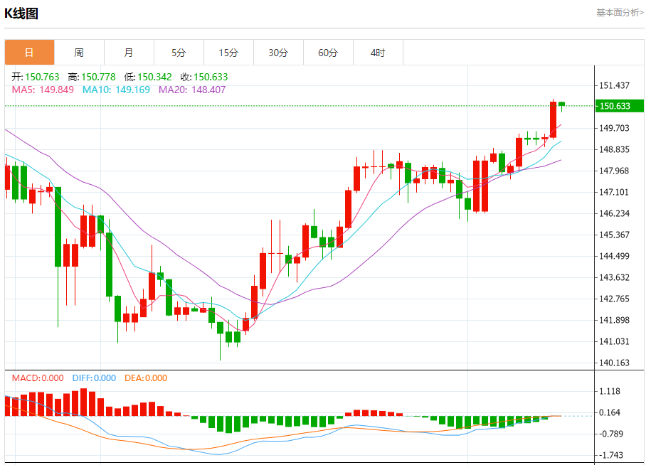 今日周三,截止目前美元兑日元报150.611,下跌0.11%。 日元基本面行情分析 周三(2月14日),日元兑美元逐步下跌后小幅反弹,盘中报150.565,跌幅0.13%。日元主力报0.6675,涨幅0.17%。日元兑美元汇率盘中跌至150附近,这让日本央行更加复杂,因为日本央行认为这是自2007年以来首次加息的