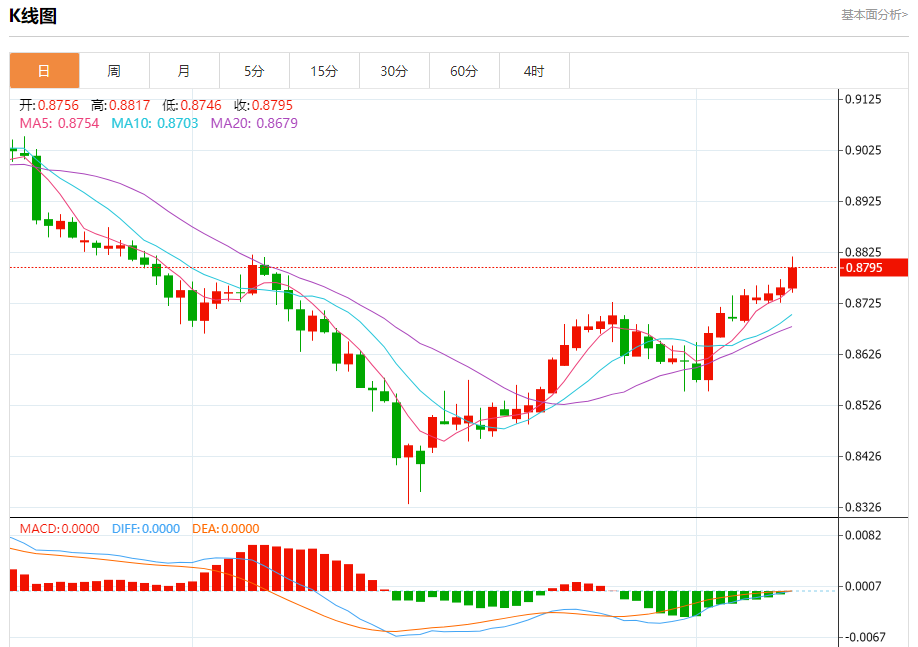 周二纽盘,瑞郎兑美元交投于0.8797,涨幅为0.44%。 瑞郎基本面分析 瑞银(27.920.020.07%)大幅上调英伟达的目标价,从580美元上调至850美元,新的目标价较最新价格高18%。维持买入评级。该芯片制造商将在本月晚些时候公布财报。 过去12个月,分析师平均将公司2024年的收入预