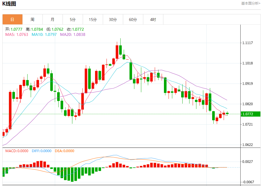 今日周五,欧元兑美元报1.0773,跌幅0.05%;英镑兑美元报1.2609,跌幅0.07%;美元兑日元报149.426,涨幅0.08%。 欧元兑美元汇率分析 技术点评:即使我们不能排除持续调整的可能性,其时间长度上,应该是有限的。 阻力位:1.08201.08051.0790 支撑位:1.07551.07