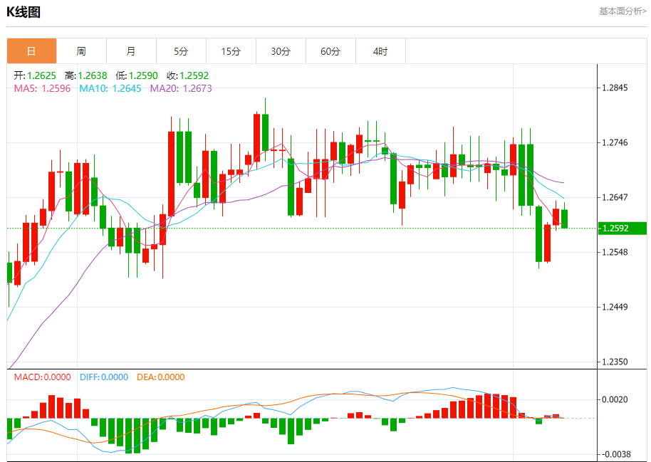 周四盘中,英镑/美元报1.2593,跌幅0.27%。 今日分析:在1.2640之下,看跌,目标价位为1.2585,然后为1.2565。 技术点评:RI技术指标向下运行。 支撑位:1.25851.25651.2535 阻力位:1.26851.26651.2640 (亚汇网编辑:冰凡)