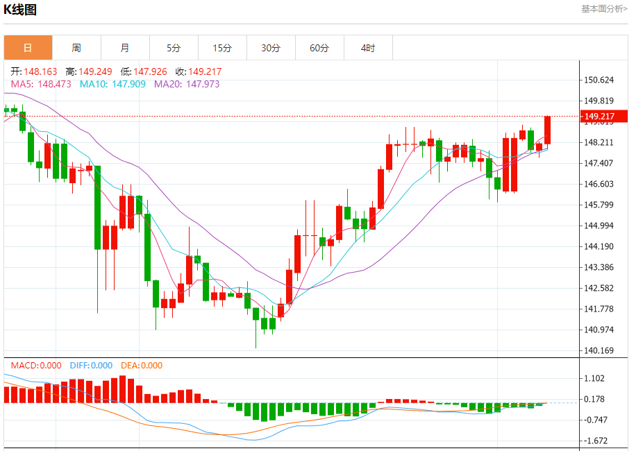 周四纽盘,美元兑日元交投于149.227,涨幅为0.71%。 日元基本面分析 日本央行副行长hiichiUchida周四在日本西部奈良对当地商界领袖发表讲话时说:“即使央行终止负利率政策,也很难想象央行会持续快速加息。” 他说,在日本央行结束负利率政策后,金融环境将保持宽松,他预