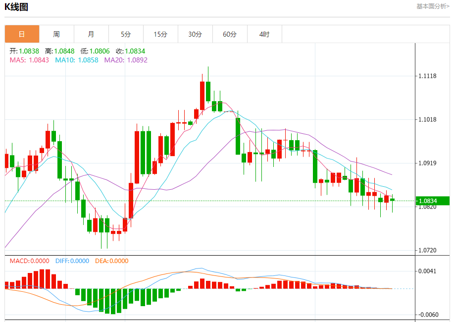 周三晚间,美元指数现报103.530,涨幅0.12%,现对美元兑欧元、英镑、日元主要货币对分析表述如下: 欧元/美元 汇价高见1.0848,低见1.0806。上一交易日,汇价收于1.0845。 基本面:欧元区经济正处于由德国推动的长期疲软阶段,但至暗时刻已过。数据显示,在第三季度GD