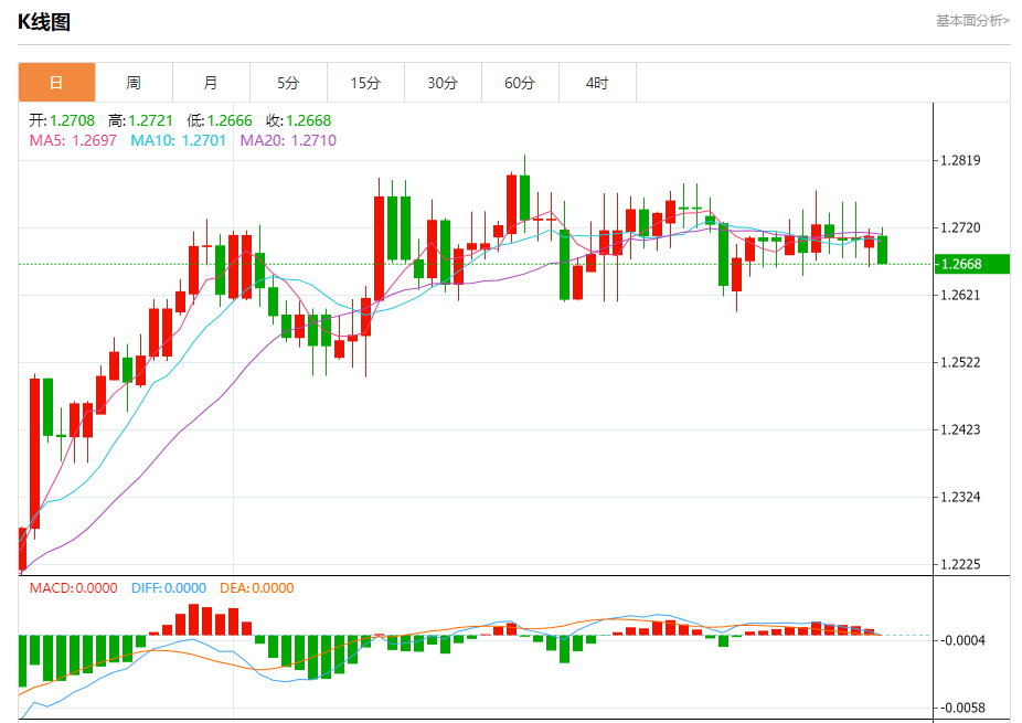 周二盘中,英镑/美元报1.2670,跌幅0.31%。 今日分析:在1.2700之下,看跌,目标价位为1.2660,然后为1.2640。 技术点评:RI技术指标向下运行。 支撑位:1.26601.26401.2615 阻力位:1.27351.27201.2700 (亚汇网编辑:冰凡)