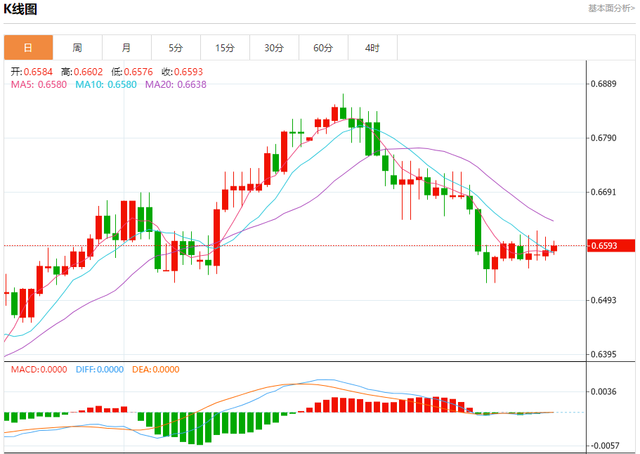 今日周五,澳元兑美元报0.6594,涨幅0.14%;美元兑加元报1.3442,跌幅0.24%;美元兑瑞郎报0.8646,跌幅0.29%。 澳元兑美元汇率分析 技术点评:RI技术指标向上运行。 阻力位:0.66500.66350.6620 支撑位:0.65700.65550.6540 美元兑加元汇率分析