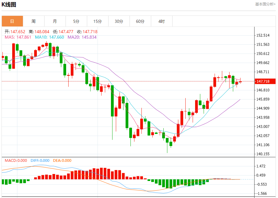 今日周五,截止目前美元兑日元报147.740,上涨0.05%。 日元基本面行情分析 东京消费者物价指数(CI)后日元走势不大,日本央行周五出炉的12月会议记录显示,委员们一致认为,有必要就退出超宽松货币政策的时机以及此后适当的加息步伐进行深入讨论,今日焦点仍集中在美国个人消费支出(C