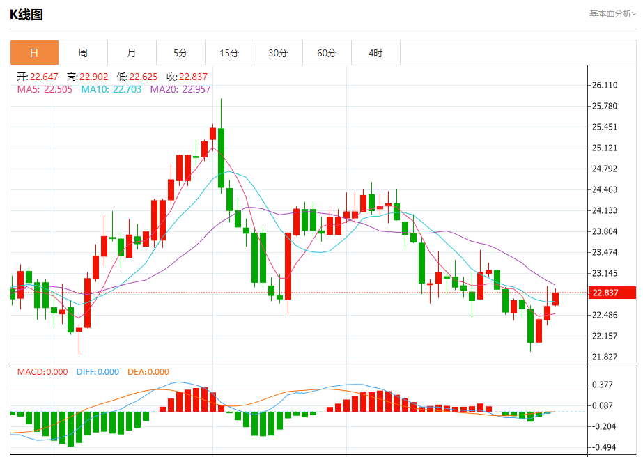 周四盘中,现货白银报22.881,涨幅1.01%。 今日分析:在22.64之上,看涨,目标价位为23.03,然后为23.10。 技术点评:RI技术指标看涨,有进一步上升空间。 支撑位:22.6422.4622.32 阻力位:23.3323.1023.03 (亚汇网编辑:冰凡)