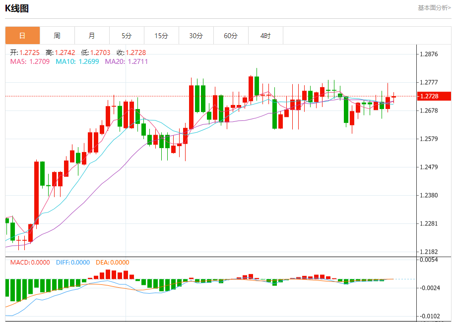 周四盘中,英镑/美元报1.2729,涨幅0.02%。 今日分析:在1.2740之下,看跌,目标价位为1.2695,然后为1.2675。 技术点评:RI技术指标运行趋势复杂,倾向于下跌。 支撑位:1.26951.26751.2650 阻力位:1.27751.27551.2740 (亚汇网编辑:冰凡)