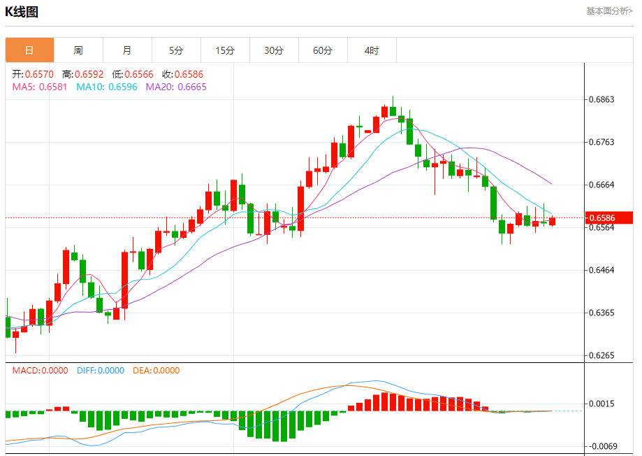 今日周四,澳元兑美元报0.6588,涨幅0.16%;美元兑加元报1.3508,跌幅0.12%;美元兑瑞郎报0.8647,涨幅0.25%。 澳元兑美元汇率分析 技术点评:RI技术指标向上运行。 阻力位:0.66300.66200.6605 支撑位:0.65650.65550.6540 美元兑加元汇率分析