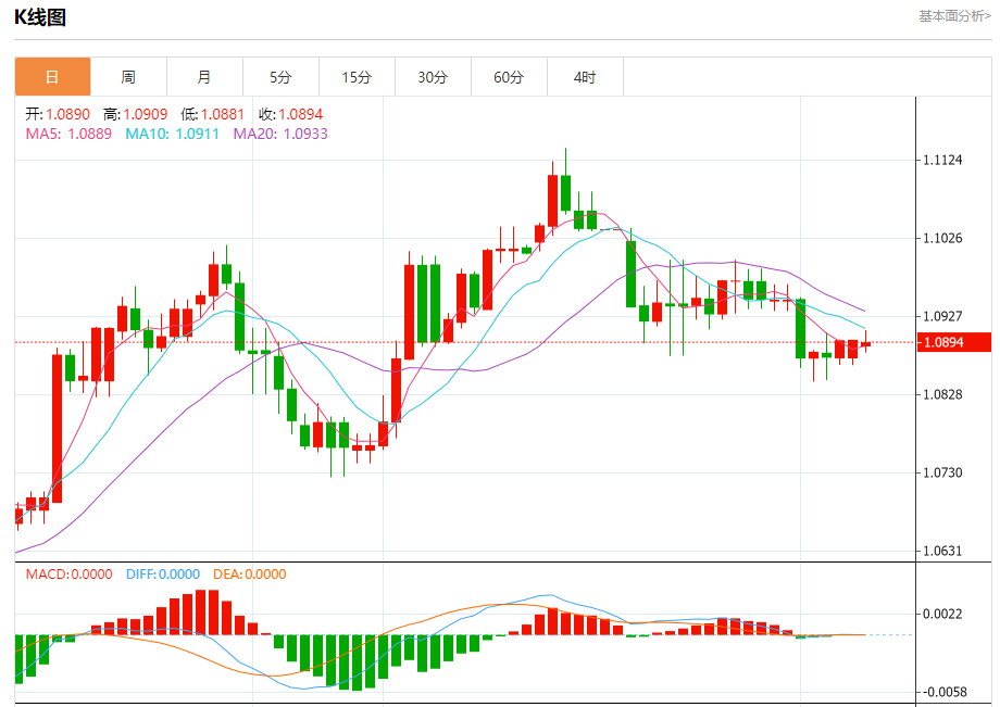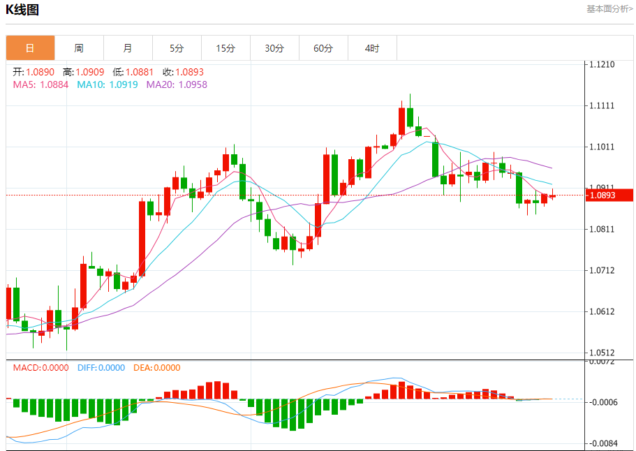 周一盘中,欧元/美元报1.0895,跌幅0.02%。 今日分析:在1.0875之上,看涨,目标价位为1.0910,然后为1.0920。 技术点评:RI技术指标运行趋势复杂,倾向于上涨。 支撑位:1.08751.08601.0845 阻力位:1.09351.09201.0910 (亚汇网编辑:冰凡)