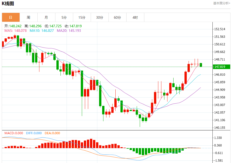 周一盘中,美元/日元报147.787,跌幅0.25%。 今日分析:在148.30之下,看跌,目标价位为147.80,然后为147.60。 技术点评:RI技术指标向下运行。 支撑位:147.80147.60147.30 阻力位:148.80148.50148.30 (亚汇网编辑:冰凡)