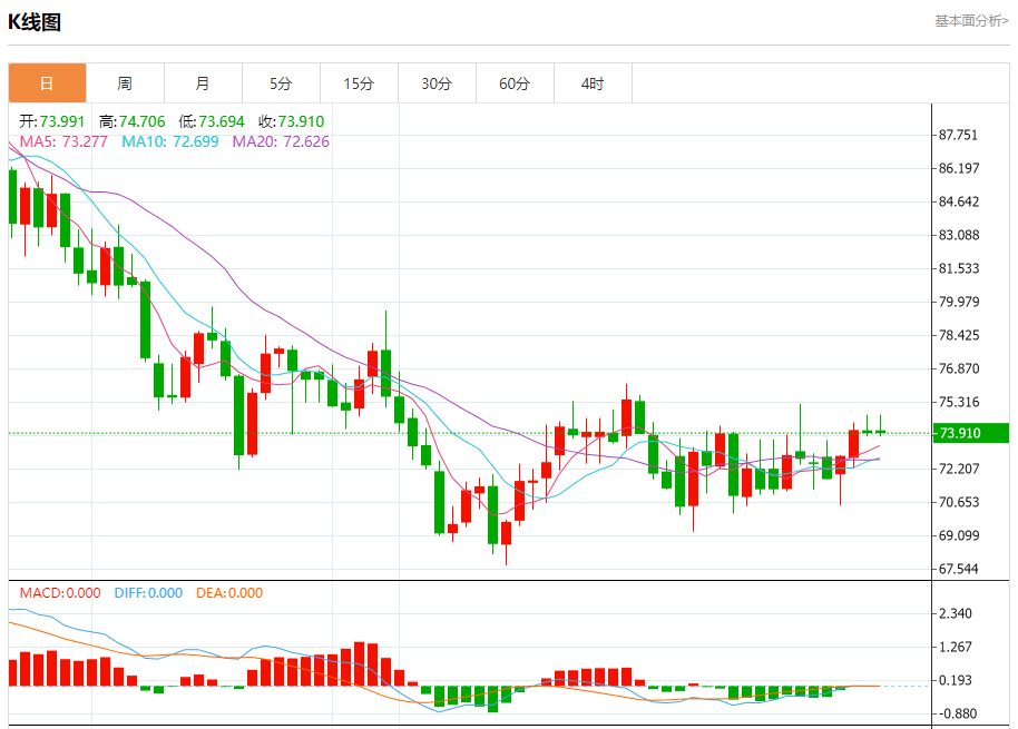 周五盘中,WTI原油报73.999,跌幅0.01%。 今日分析:在73.80之上,看涨,目标价位为75.25,然后为76.10。 技术点评:RI技术指标看涨,有进一步上升空间。 支撑位:73.8073.3072.50 阻力位:77.0076.1075.25 (亚汇网编辑:冰凡)
