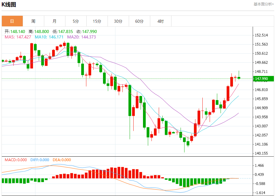今日周五,截止目前美元兑日元报147.984,下跌0.11%。 日元基本面行情分析 1月19日,日本总务省统计局公布的数据显示,12月消费者价格指数(CI)同比增长2.6%,涨幅较上月收窄0.2个百分点;扣除生鲜食品的核心CI同比增长2.3%,较上月收窄0.2个百分点,创2022年7月以来新低。