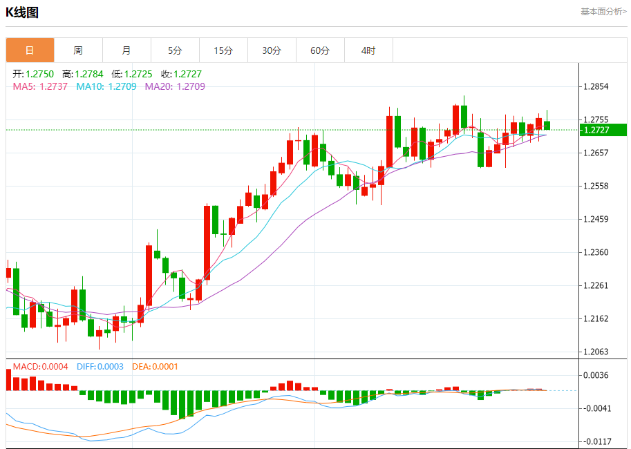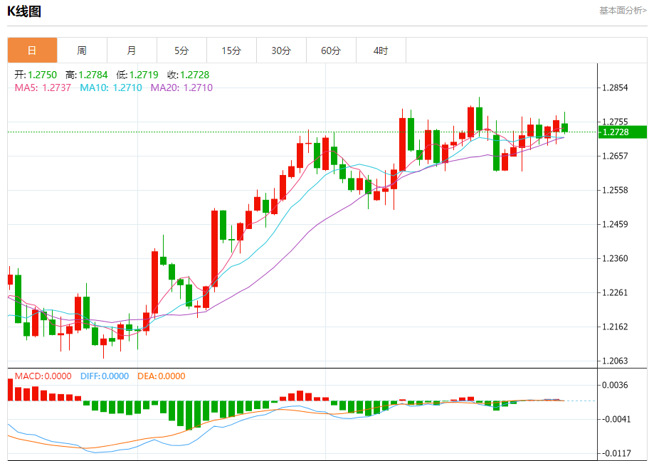 周五盘中,英镑/美元报1.2727,跌幅0.27%。 今日分析:在1.2755之下,看跌,目标价位为1.2700,然后为1.2680。 技术点评:RI技术指标向下运行。 支撑位:1.27001.26801.2660 阻力位:1.28101.27851.2755 (亚汇网编辑:冰凡)