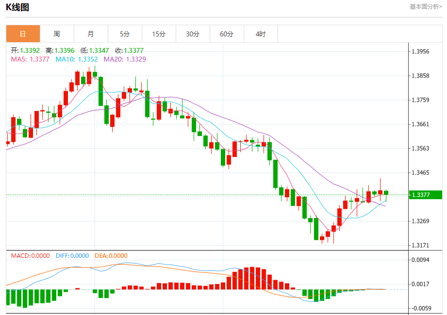 今日周五,澳元兑美元报0.6686,跌幅0.03%;美元兑加元报1.3377,跌幅0.13%;美元兑瑞郎报0.8545,涨幅0.29%。 澳元兑美元汇率分析 技术点评:RI技术指标向下运行。 阻力位:0.67450.67250.6710 支撑位:0.66650.66500.6640 美元兑加元汇率分析