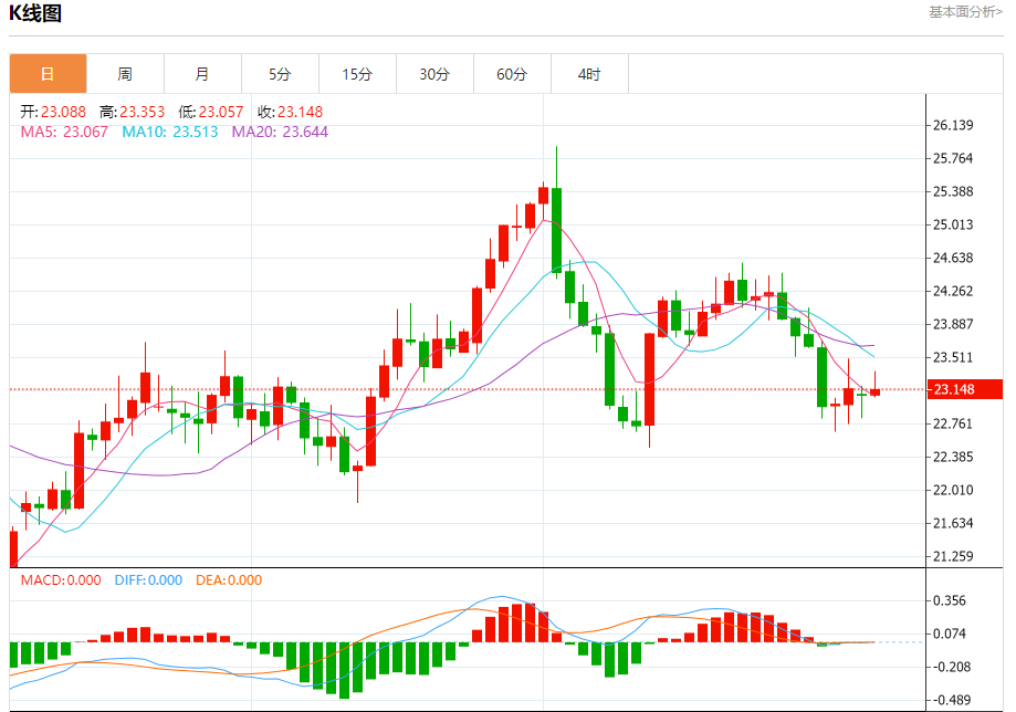 周二盘中,现货白银报23.145,涨幅0.26%。 今日分析:在22.96之上,看涨,目标价位为23.35,然后为23.50。 技术点评:RI技术指标运行趋势复杂,倾向于上升。 支撑位:22.9622.8122.67 阻力位:23.7023.5023.35 (亚汇网编辑:冰凡)
