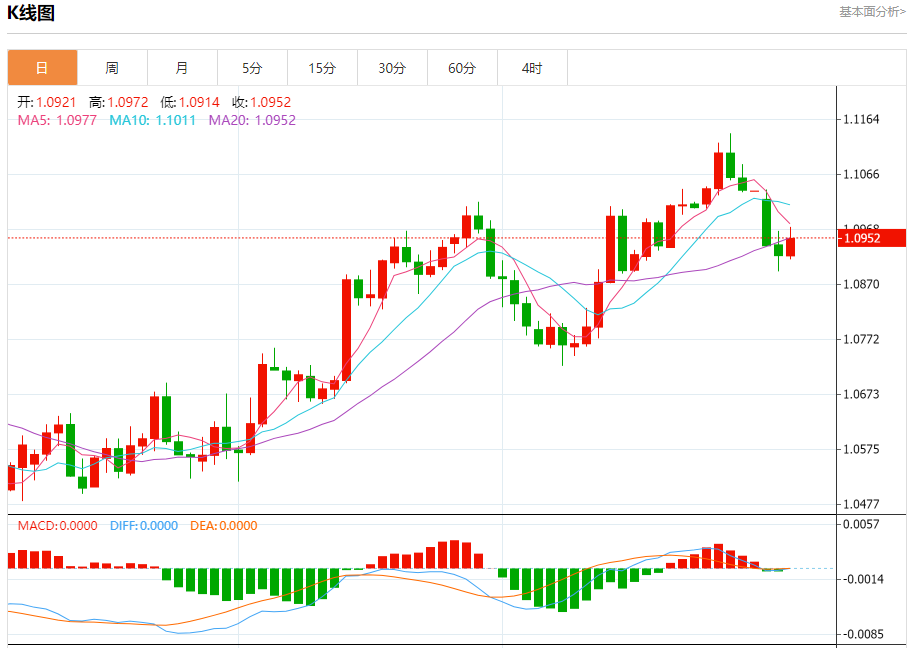周四晚间,美元指数现报102.344,跌幅0.12%,现对美元兑欧元、英镑、日元主要货币对分析表述如下: 欧元/美元 汇价高见1.0972,低见1.0914。上一交易日,汇价收于1.0921。 基本面:从基本面角度看,欧洲地区需求并没有发生根本性变化,本轮运价涨价主要是因为供应链不畅导致