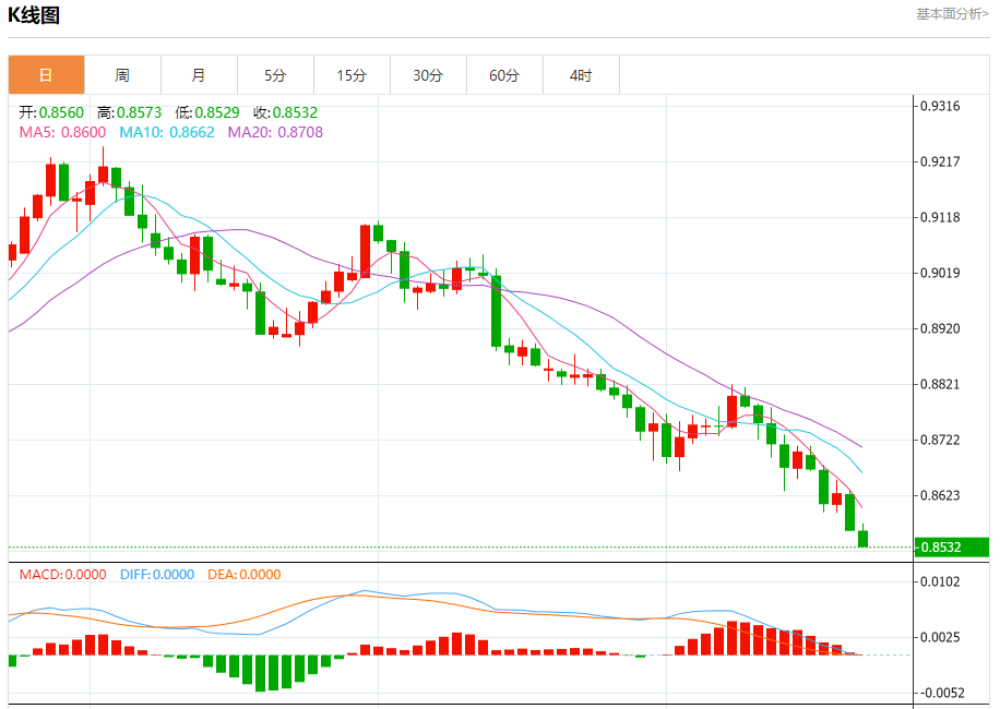 周五纽盘,瑞郎兑美元交投于0.8535,跌幅为0.33%。 瑞郎基本面分析 瑞银发布研究报告称,尽管由于净利息收益率对整个行业造成压力,将农业银行(601288)(01288)明年盈利增长预测从5.2%下调至2.7%,但仍然预计农行2024年盈利增长将跑赢同业。其强劲的贷款增长得益于其在农村和县域银行业