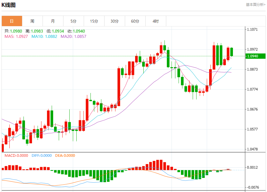 周三盘中,欧元/美元报1.0940,跌幅0.37%。 今日分析:在1.0970之下,看跌,目标价位为1.0925,然后为1.0905。 技术点评:RI技术指标向下运行。 支撑位:1.09251.09051.0890 阻力位:1.10101.09901.0970 (亚汇网编辑:冰凡)