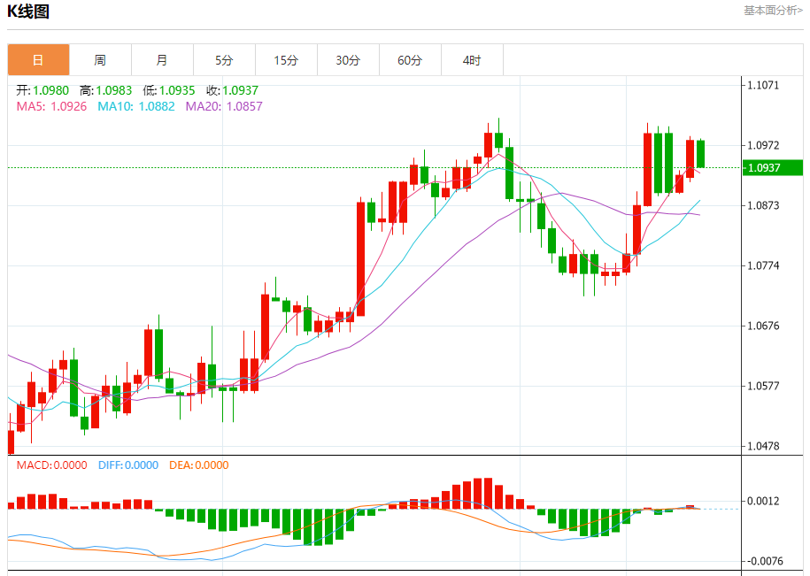 今日周三,截止目前欧元兑美元报1.0937,下跌0.40%。 欧元基本面行情分析 近日,欧洲央行管理委员会成员Gdiiaiku在接受采访时表示,尽管11月的消费者价格指数(CI)出现了令人惊喜的下降,但市场对降息的预期可能过于乐观。他警告说,投资者需要保持谨慎,因为中期前景并没有太大
