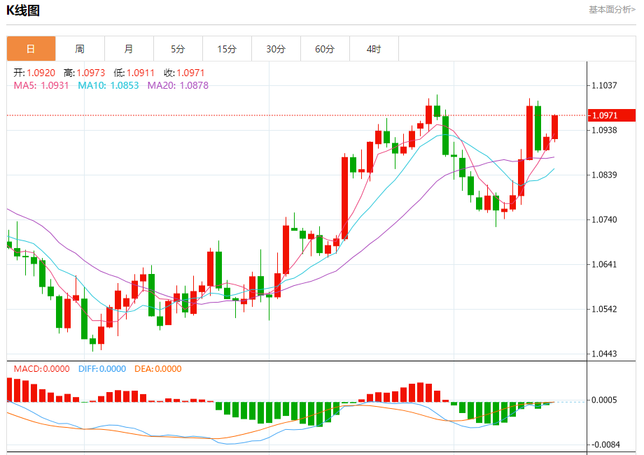 周二盘中,欧元/美元报1.0970,涨幅0.42%。 今日分析:在1.0905之上,看涨,目标价位为1.0970,然后为1.0995。 技术点评:RI技术指标向上运行。 支撑位:1.09051.08901.0860 阻力位:1.10101.09951.0970 (亚汇网编辑:冰凡)