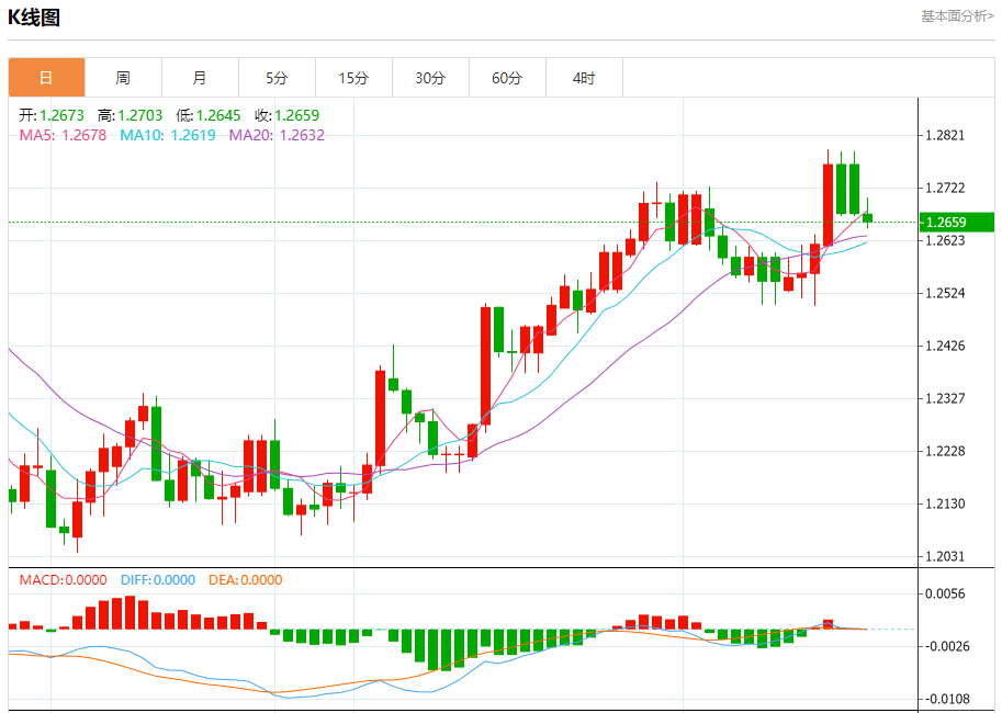 周一盘中,英镑/美元报1.2660,跌幅0.12%。 今日分析:在1.2730之下,看跌,目标价位为1.2645,然后为1.2605。 技术点评:RI技术指标运行趋势复杂,倾向于下跌。 支撑位:1.26451.26051.2560 阻力位:1.27951.27651.2730 (亚汇网编辑:冰凡)