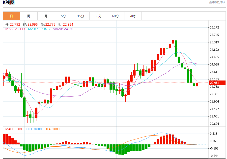 周二盘中,现货白银报22.996,涨幅0.87%。 今日分析:在22.80之上,看涨,目标价位为23.08,然后为23.22。 技术点评:RI技术指标看涨,有进一步上升空间。 支撑位:22.8022.7022.60 阻力位:23.3523.2223.08 (亚汇网编辑:冰凡)
