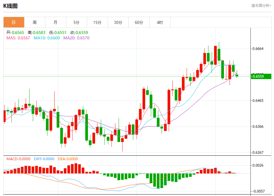 今日周一,澳元兑美元报0.6558,跌幅0.30%;美元兑加元报1.3581,跌幅0.07%;美元兑瑞郎报0.8810,涨幅0.09%。 澳元兑美元汇率分析 技术点评:只要0.6580阻力位不被突破,向下跌破0.6540位置的风险很高。 阻力位:0.66200.66000.6580 支撑位:0.65400.65200.650