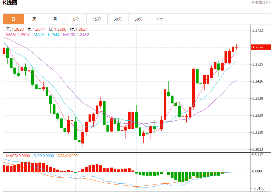 周二盘中,英镑/美元报1.2624,跌幅0.02%。 今日分析:在1.2645之下,看跌,目标价位为1.2600,然后为1.2585。 技术点评:RI技术指标运行趋势复杂,倾向于下跌。 支撑位:1.26001.25851.2560 阻力位:1.26751.26651.2645 (亚汇网编辑:冰凡)