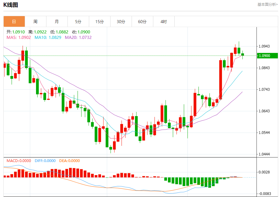 周三欧市盘中,欧元兑美元交投于1.0902,跌幅为0.09%。 欧元基本面分析 欧洲央行警告,欧元区经济增长乏力可能会放大加息给金融稳定带来的风险。 欧洲央行在最新的金融稳定评估报告中指出,随着该行历史性的货币紧缩行动的影响继续显现,如果经济继续令人失望,那么家庭收入