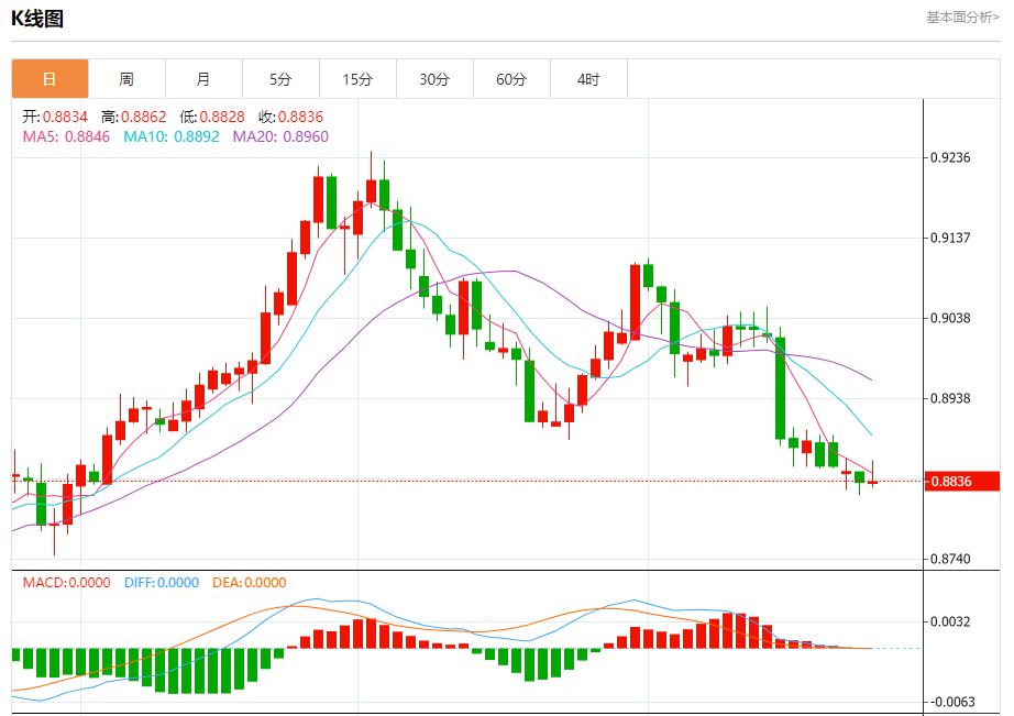 周三纽盘,瑞郎兑美元交投于0.8838,涨幅为0.01%。 瑞郎基本面分析 11月22日,瑞银发布研究报告称,予领展房产基金“买入”评级,称内地零售仍见挑战,目标价53.9港元。 该行指出,领展广州天河领展广场第一期资产提升完成并正式开幕。该行总结参观商场过程指出,内地整体租